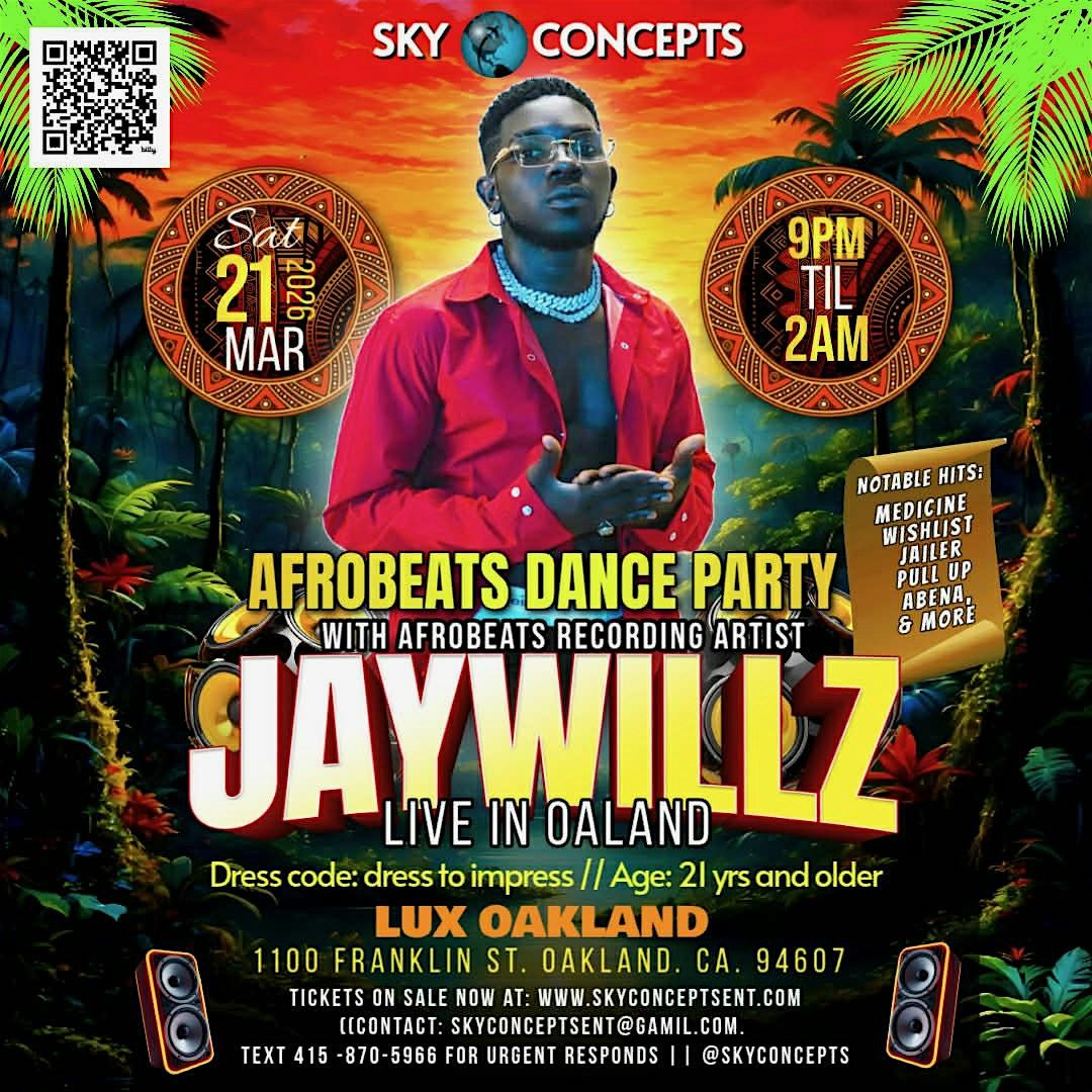 Eventbeite: https://www.eventbrite.com/e/afrobeats-dance-party-with-jaywilliz-live-in-oakland-tickets-1983183376866?aff=oddtdtcreator