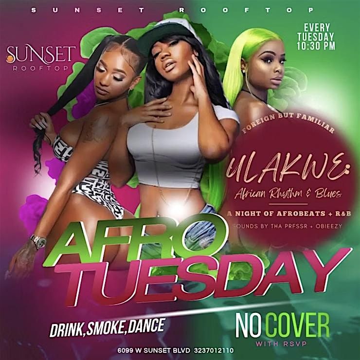 AFROBEATS ON TUESDAYS is the ultimate midweek vibe you've been looking for! Join us at the SUNSET ROOFTOP for a night filled with infectious rhythms and good vibes. Get ready to dance to the hottest Afrobeats tunes and mingle with a diverse crowd of music lovers. Whether you're a seasoned Afrobeats fan or new to the genre, this event is guaranteed to have you moving and grooving all night long. Don't miss out on the best Tuesday night party in town!