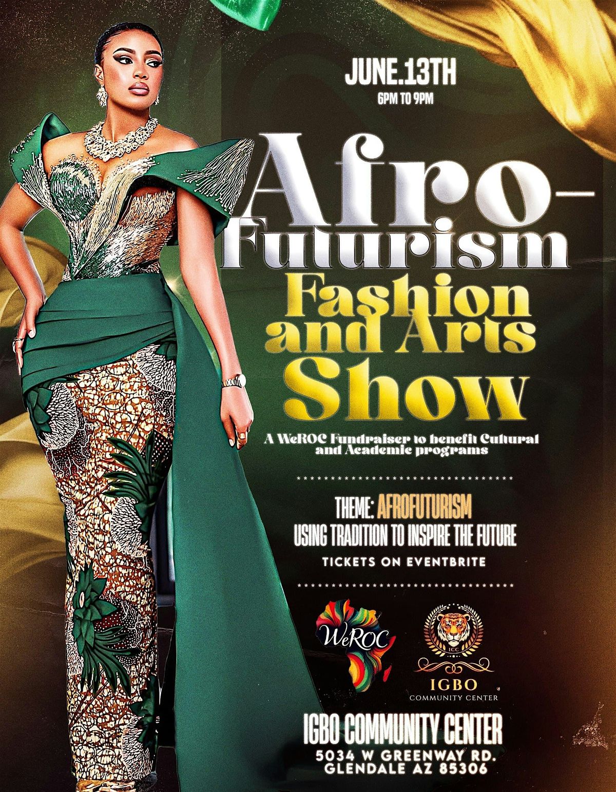 Get ready for an unforgettable night at the AfroFuturism Fashion Show and Fundraiser! It is a celebration of creativity and cultural identity for the purpose of raising funds to support youth, cultural and educational programs that serve African and African diaspora's communities.
