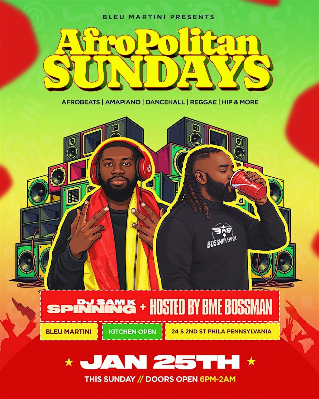 Welcome to Afropolitan Sundays at Bleu Martini! Get ready for a night of vibrant music, delicious drinks, and great company. Join us on January 25, 2026 at 10:00 PM (Eastern Time) for an unforgettable experience. Let's dance the night away and celebrate life together. Don't miss out on this epic event!