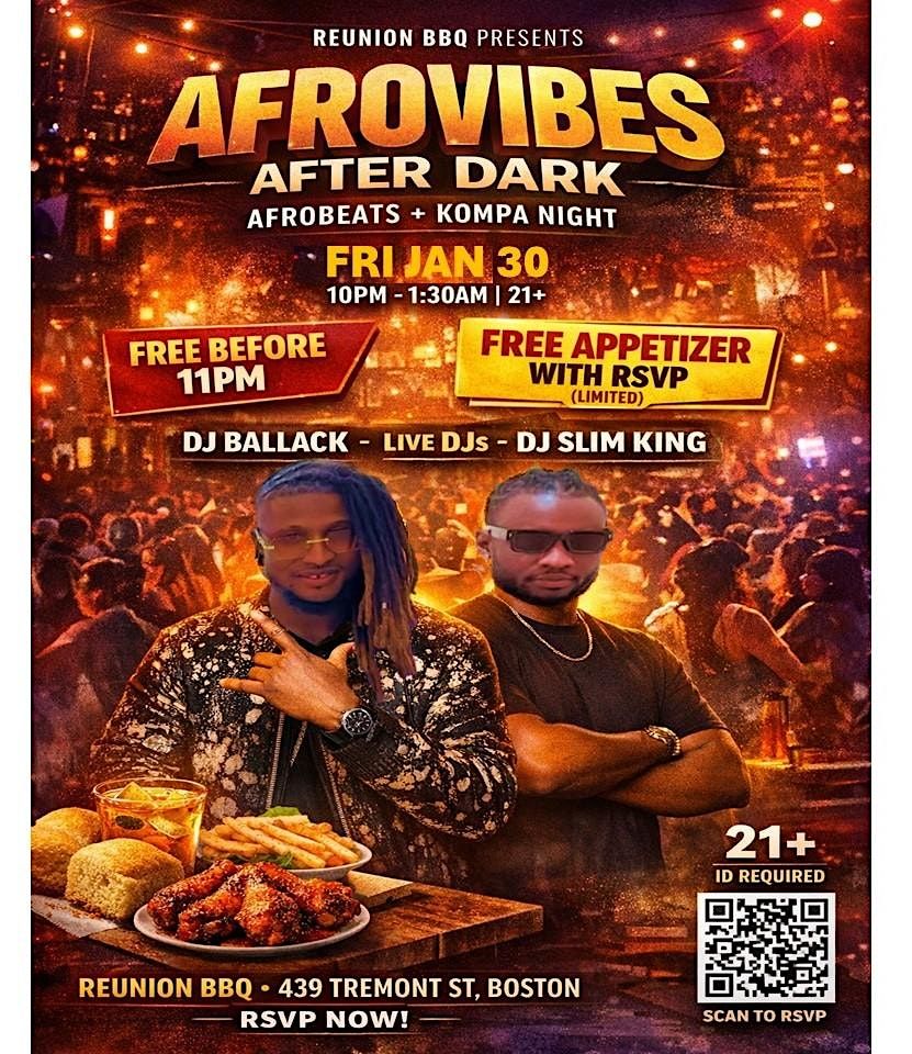 AfroVibes After Dark: FREE Before 11 + FREE Appetizer w/ RSVP | Reunion BBQ