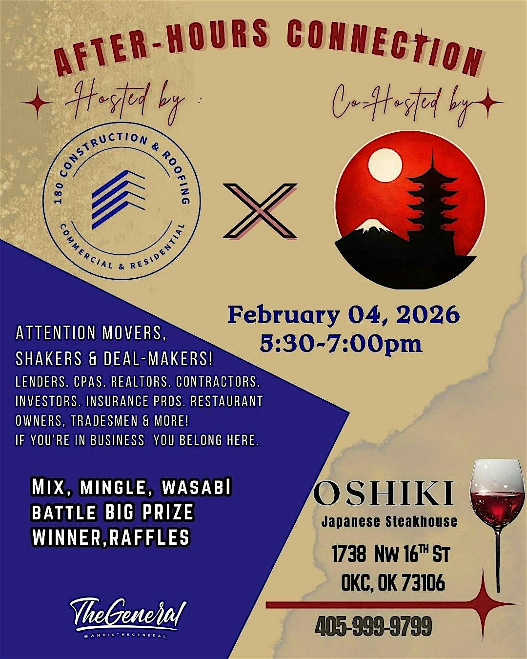 Join us for a laid-back networking night with great people, great drinks, and great food. Connect with OKC’s movers, shakers, and deal-makers while enjoying premium sushi, cocktails, raffles, and good energy.
