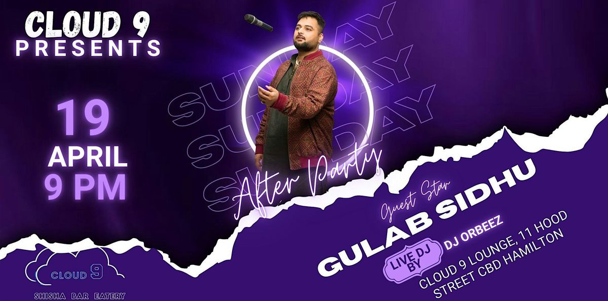 After performing at a Vaisakhi event in Hamilton, Gulab Sidhu will be making a special appearance at Cloud 9 — giving fans a rare opportunity to see him up close in an exclusive party setting.