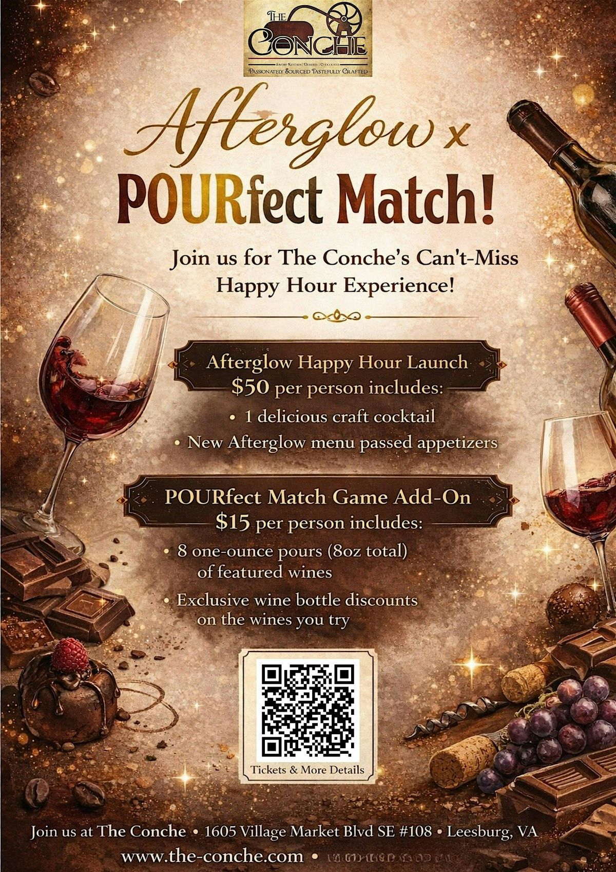 Be among the first to experience Afterglow, The Conche’s new happy hour launch, during a special evening of cocktails, passed bites, and an optional interactive wine experience. This cocktail-style event is designed to feel social, vibrant, and effortlessly elevated, giving guests a first taste of The Conche’s newest happy hour offerings in a format that is both relaxed and memorable.