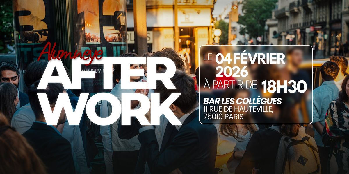 Toute l'équipe AlumnEye est ravie de te convier à son 67ème Afterwork ! Nous te donnons rendez-vous au bar Les Collègues, 11 rue de Hauteville dans le 10ème, le mercredi 4 février dès 18h30 pour un moment convivial et festif.