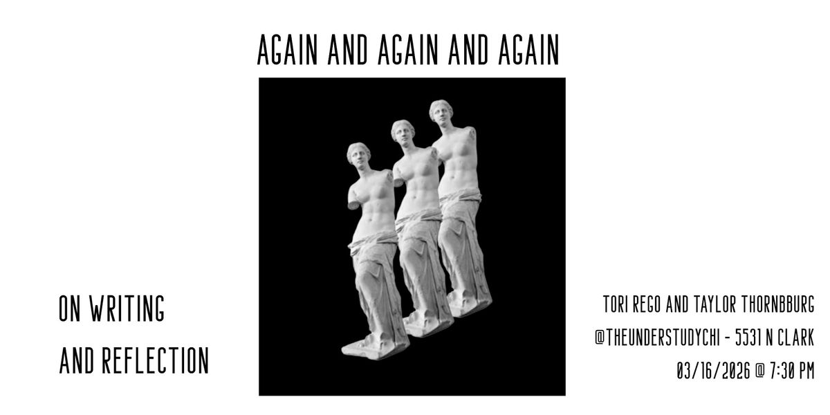 "Again and Again and Again: On Writing and Reflection" is a prose-based generative writing workshop hosted by Tori Rego and Taylor Thornburg. Participants will study excerpts of fiction and nonfiction works fixated on memory, recollection, and narrative form, including Vladimir Nabokov's Speak Memory, Marcel Proust's In Search of Lost Time, and Taylor Thornburg's Agathe: 6:00pm to 7:27. Workshop participants will be led through a series of writing prompts to probe their own memories in search of weaving new stories that interlace the past, the present, and all the spaces inbetween.