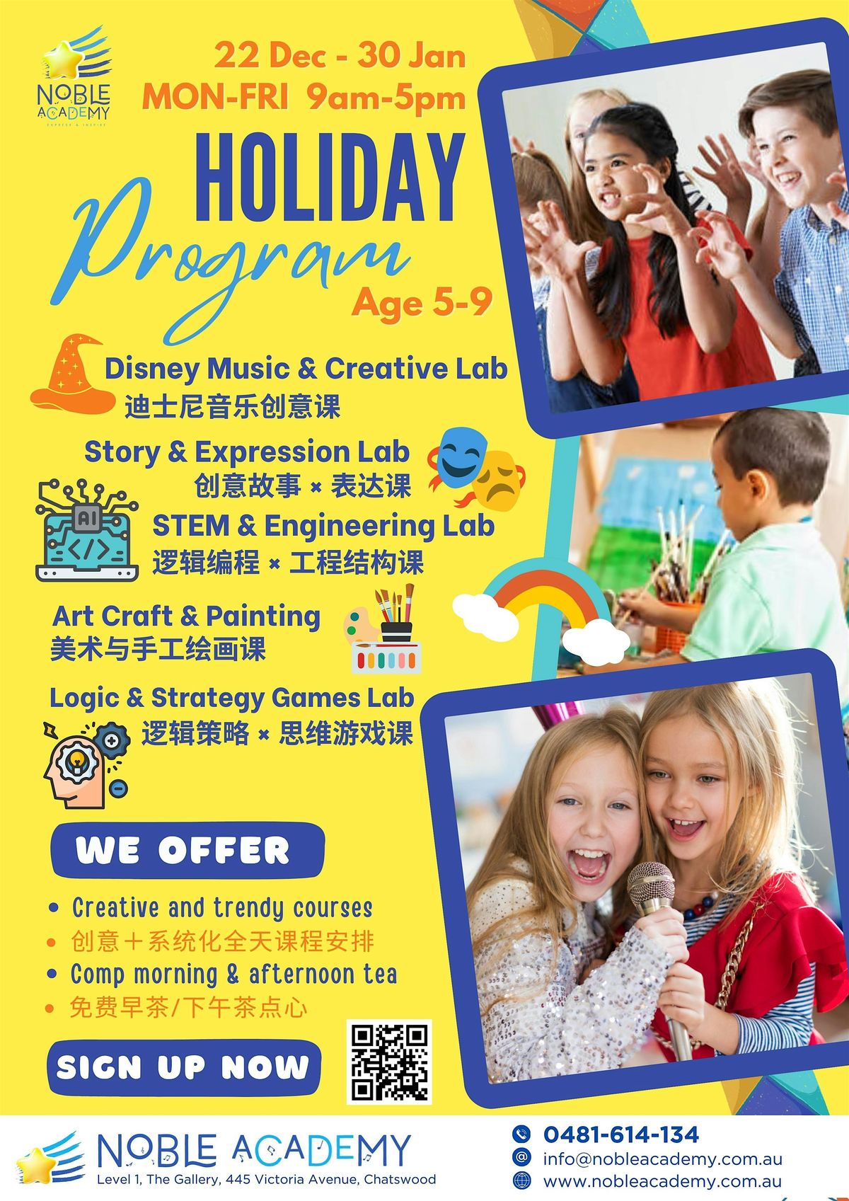 This April, Noble Academy’s School Holiday Program invites your child to explore a range of inspiring programs designed to nurture their creativity, cultural understanding, and skills for the future! With expert-led classes in music, art, language, and technology, our programs offer an immersive and enjoyable learning experience.