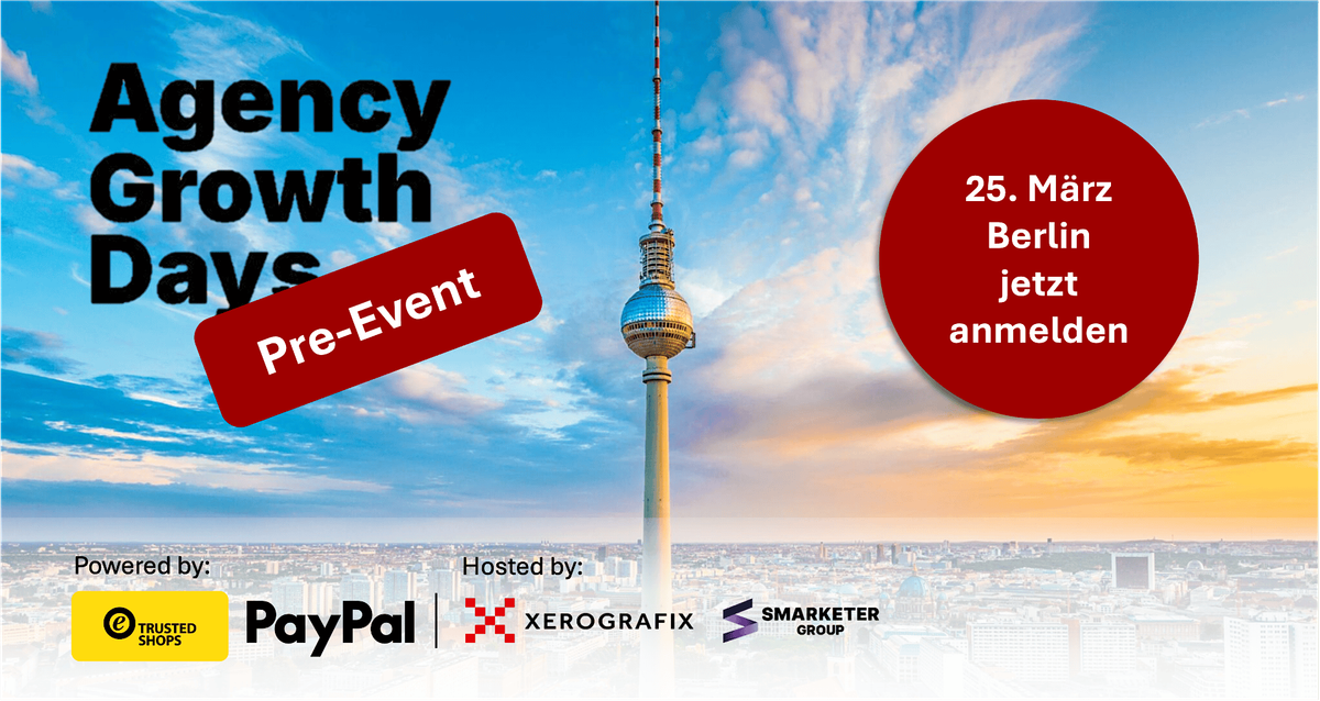 PayPal und Trusted Shops laden zum Pre-Event der 2026er Agency Growth Days in Berlin ein, hosted by XeroGrafiX und Smarketer.
