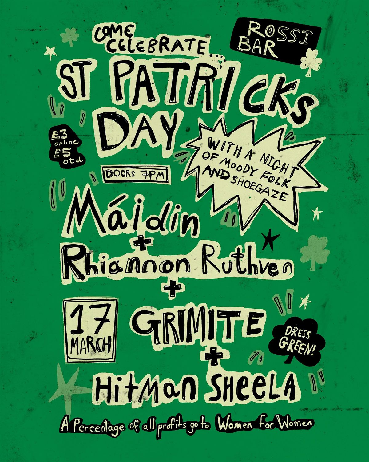Come celebrate St Patricks Day with a night of moody folk and shoegaze dress code is green! A percentage of proceeds go to women to women