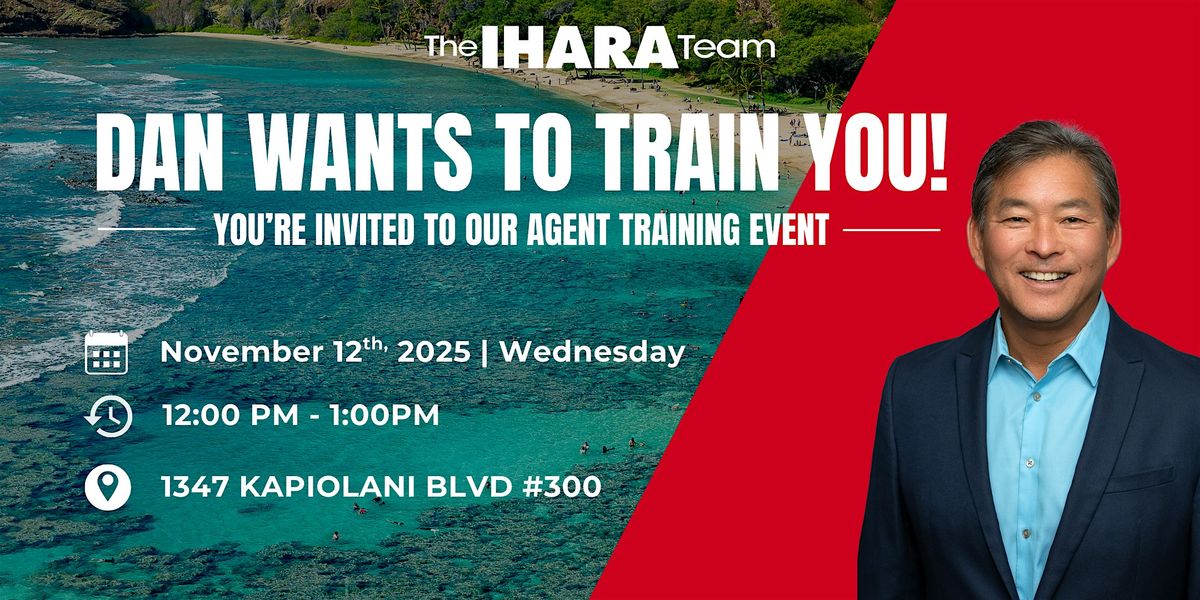 This is a limited-capacity event, and seats fill up fast when Dan is training. The IHARA Team is bringing this exclusive opportunity to Honolulu agents who are serious about growth.