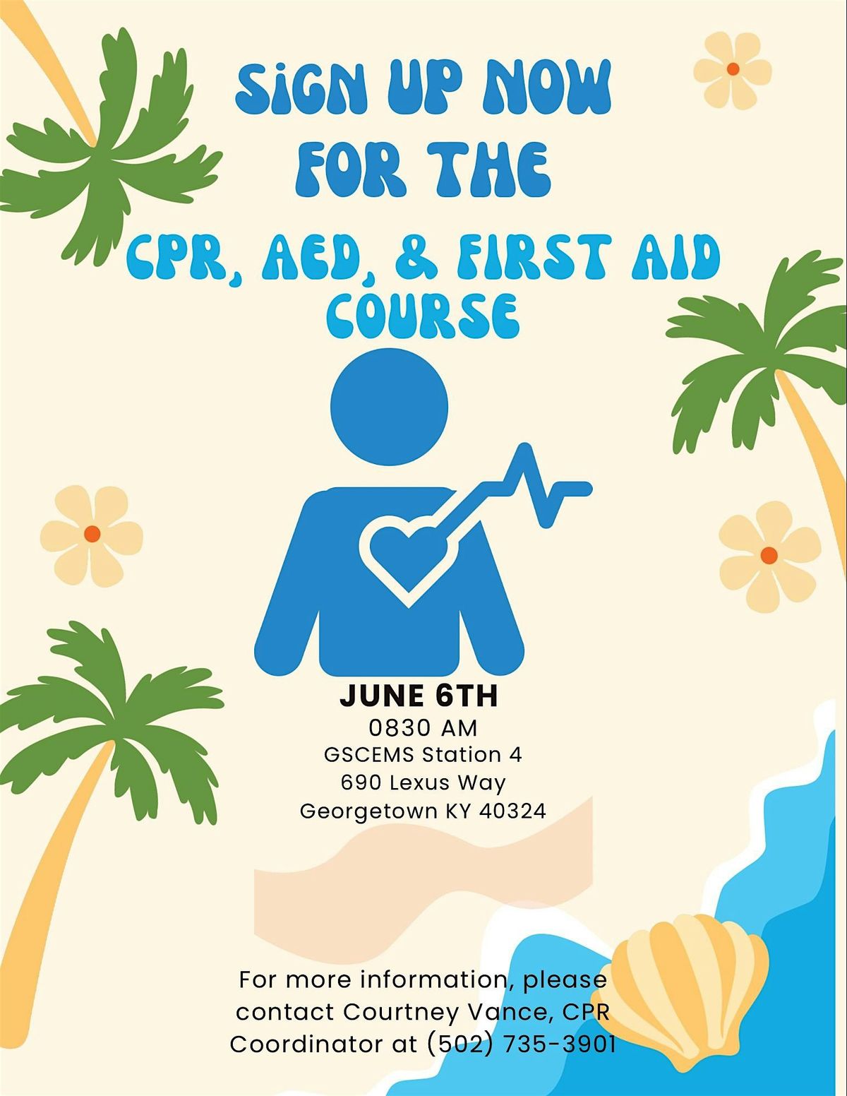 Join us at Georgetown-Scott County EMS Station 4 on June 6th at 8:30 AM for our AHA Heartsaver course this summer!