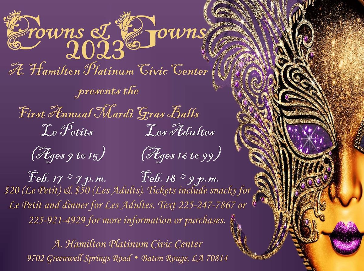 Crowns & Gowns Mardi Gras Gala 2023 presented by A.Hamilton PlatinumAbout this Event