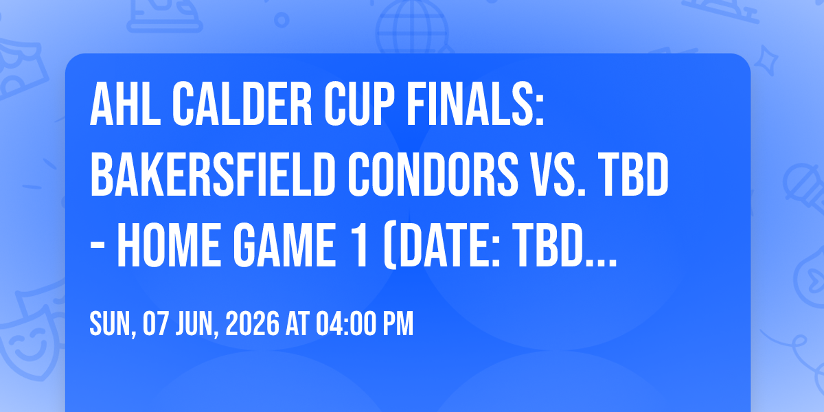 β¨ Embark on an extraordinary journey at AHL Calder Cup Finals: Bakersfield Condors vs. TBD - Home Game 1 (Date: TBD - If Necessary), where every moment promises to be unforgettable! π Imagine of transforming Dignity Health Arena in the heart of Bakersfield, CA into a realm of endless possibilities. π