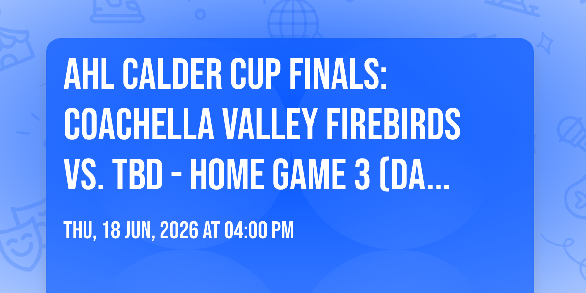 π Journey into wonder at AHL Calder Cup Finals: Coachella Valley Firebirds vs. TBD - Home Game 3 (Date: TBD - If Necessary), where extraordinary experiences await around every corner! ποΈ Set against the backdrop of Acrisure Arena in dynamic Palm Desert, CA, this event promises to exceed all expectations. π