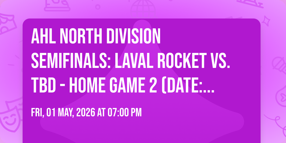 ✨ Embark on an extraordinary journey at AHL North Division Semifinals: Laval Rocket vs. TBD - Home Game 2 (Date: TBD - If Necessary), where every moment promises to be unforgettable! 🌟 Imagine of transforming Place Bell in the heart of Laval, QC into a realm of endless possibilities. 📅 Join us on May 1st, 2026 at 07:00 PM for an experience that will challenge your imagination and exceed your expectations. 🎯 This carefully curated event combines the finest elements of entertainment, innovation, and community spirit. Whether you're an adventure seeker, culture enthusiast, or someone looking for unique experiences, this event offers something special for everyone. 🎊 Don't miss this chance to be part of something extraordinary!http://maps.seatics.com/PlaceBell_Hockey_2017-03-24_2017-03-24_1300_SVGC_tn.gif