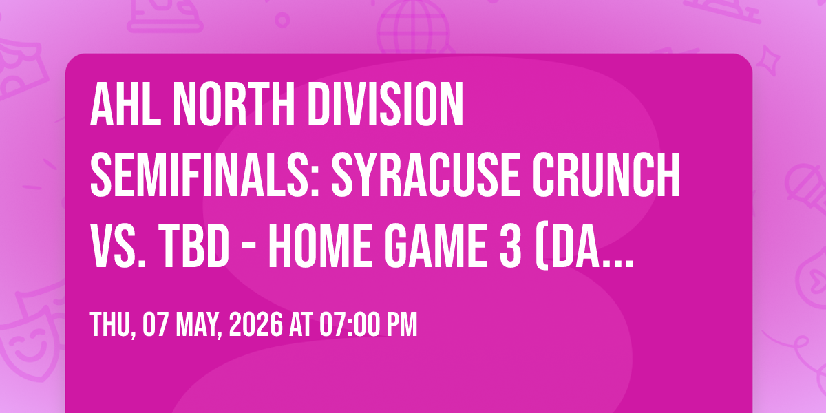 AHL North Division Semifinals: Syracuse Crunch vs. TBD - Home Game 3 (Date: TBD - If Necessary)