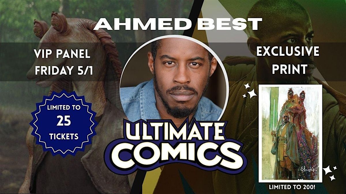 Ahmed Best will be joining us not JUST for Free Comic Book Day at Crabtree Mall but now for an EXCLUSIVE VIP Event! Ahmed will be joining us for a VIP Panel & Signing Friday night at Ultimate Comics Cary from 7:00PM-8:30PM! VIP panel tickets will be limited to just 25 people. Each attendee will also get a copy of our exclusive Tommy Lee Edwards art print!Ahmed Best VIP Panel Ticket -