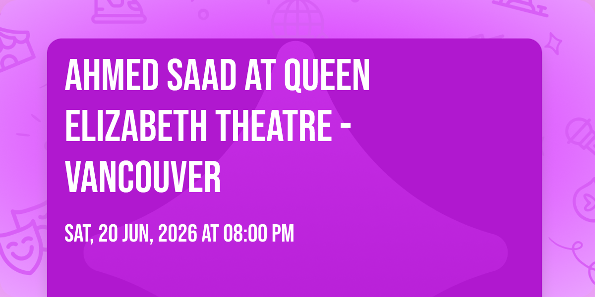 β¨ Enter a world of endless possibilities at Ahmed Saad at Queen Elizabeth Theatre - Vancouver, where every moment tells a story! ποΈ The stunning Queen Elizabeth Theatre - Vancouver in vibrant Vancouver, BC transforms into a realm of wonder on June 20th, 2026 at 08:00 PM. π They have crafted an experience that goes beyond the ordinary, combining elements of surprise, delight, and pure entertainment. Every detail has been thoughtfully considered to ensure your journey with us is nothing short of extraordinary. π― Join fellow adventure seekers and memory makers in this celebration of imagination and innovation. π Reserve your spot today and be part of something truly special!