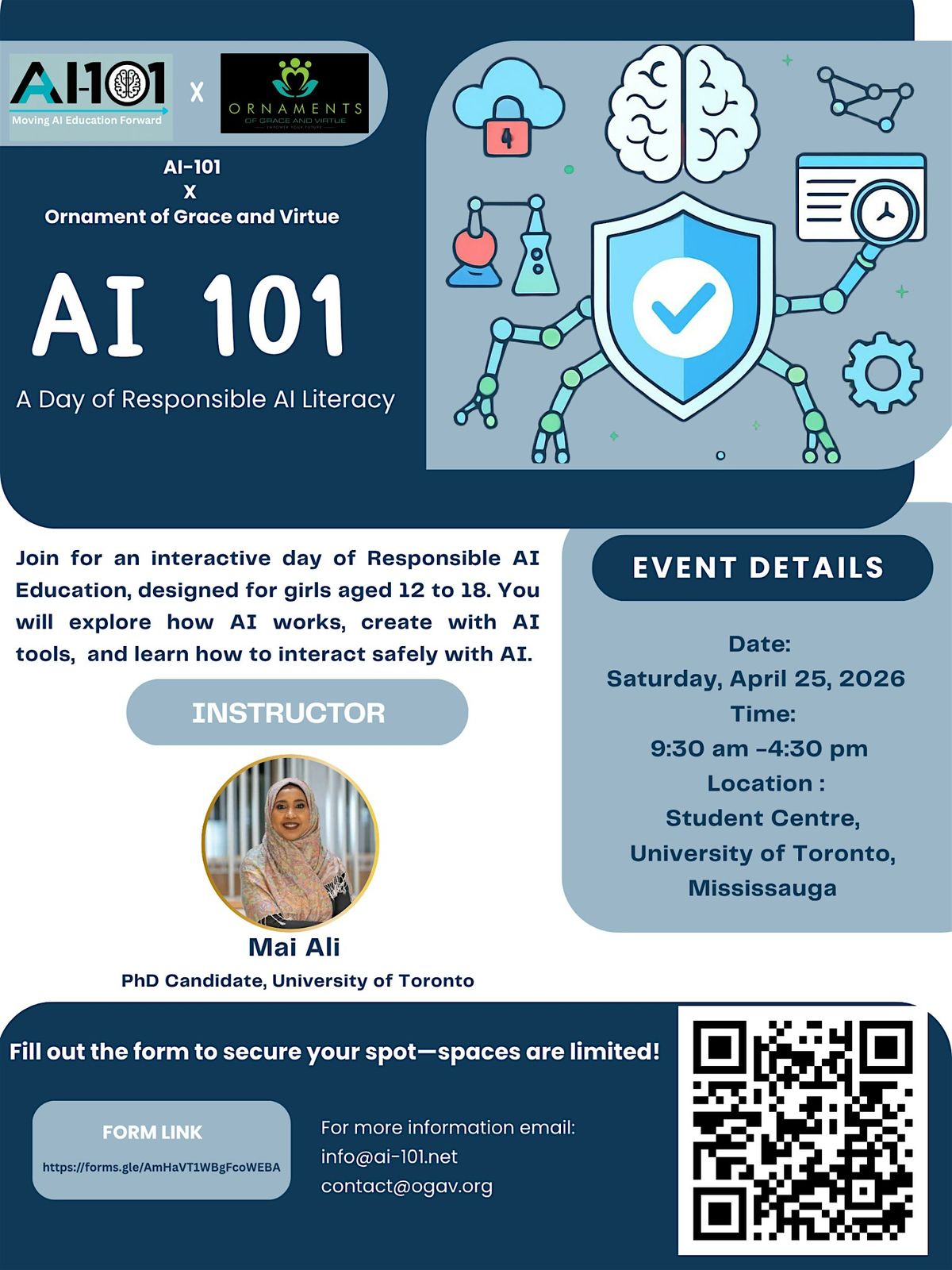 Join us for AI 101: A Day of Responsible AI Literacy — an exciting, hands-on workshop designed for girls aged 12–18 to explore the world of artificial intelligence.