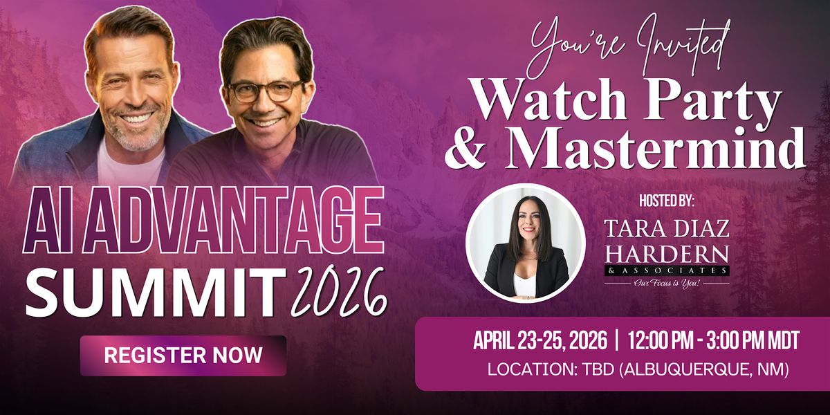 The world is shifting, and AI is no longer optional. While massive corporations sprint ahead, this is your chance to gain the edge. Join Tara Diaz and the Hardern & Associates team for an immersive, 3-day Watch Party of the 2026 AI Advantage Summit featuring Tony Robbins and Dean Graziosi.