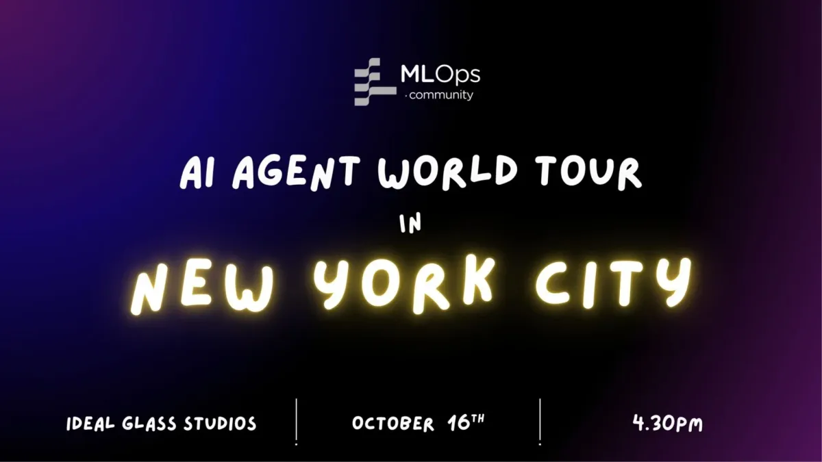 The MLOps Community AI Agent World Tour is coming to New York City this October, and if you’re building or thinking about building AI agents, this is where you want to be.