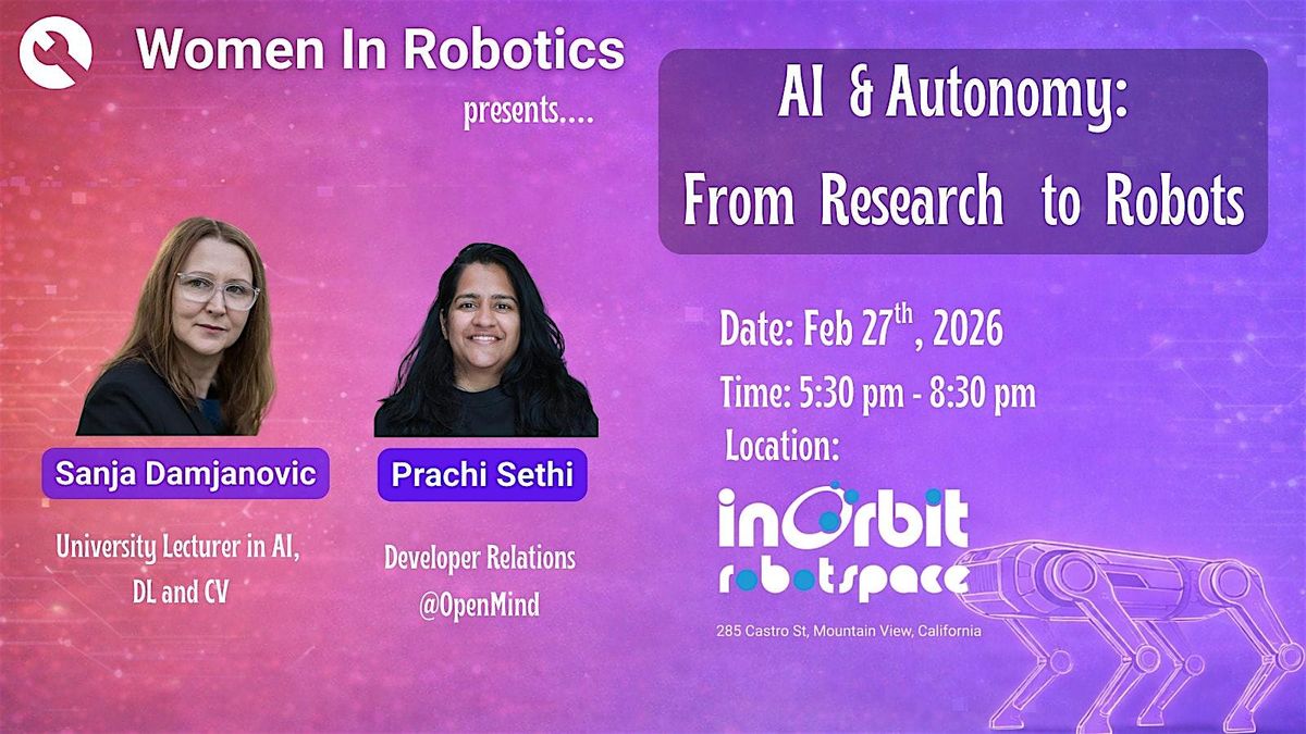 Info: Introduction to Women in Robotics β Bay Area and overview of the evening.