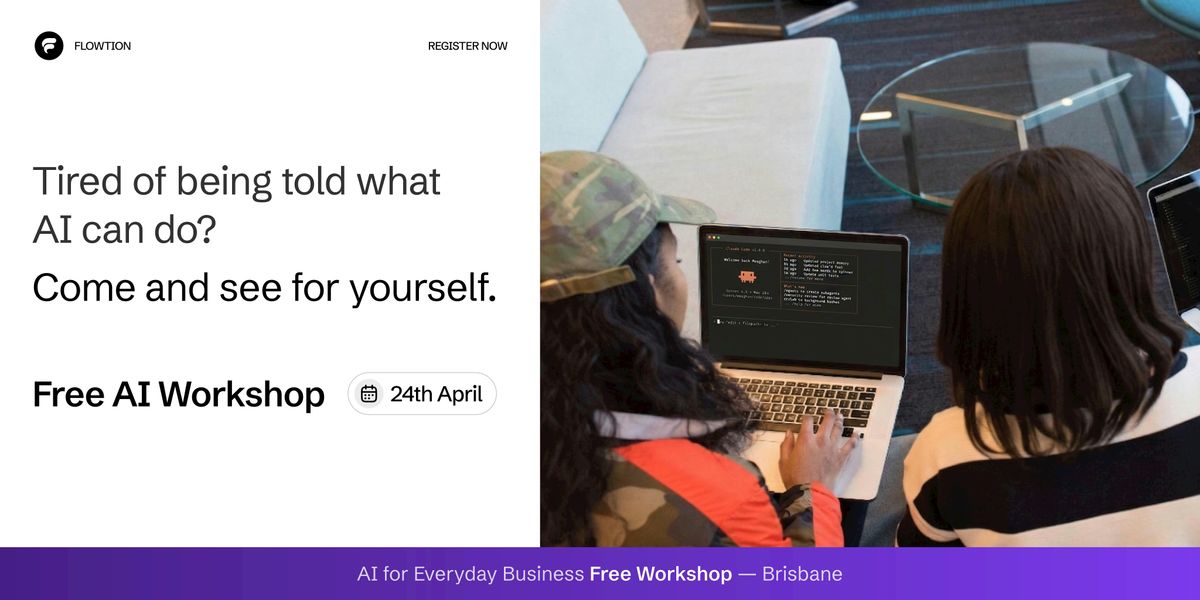 flowtion.ai's first Brisbane workshop is a free, in-person session for established business owners who are curious about AI but tired of vague promises, jargon, and conversations that never answer the real question: is this actually worth it for a business like mine?