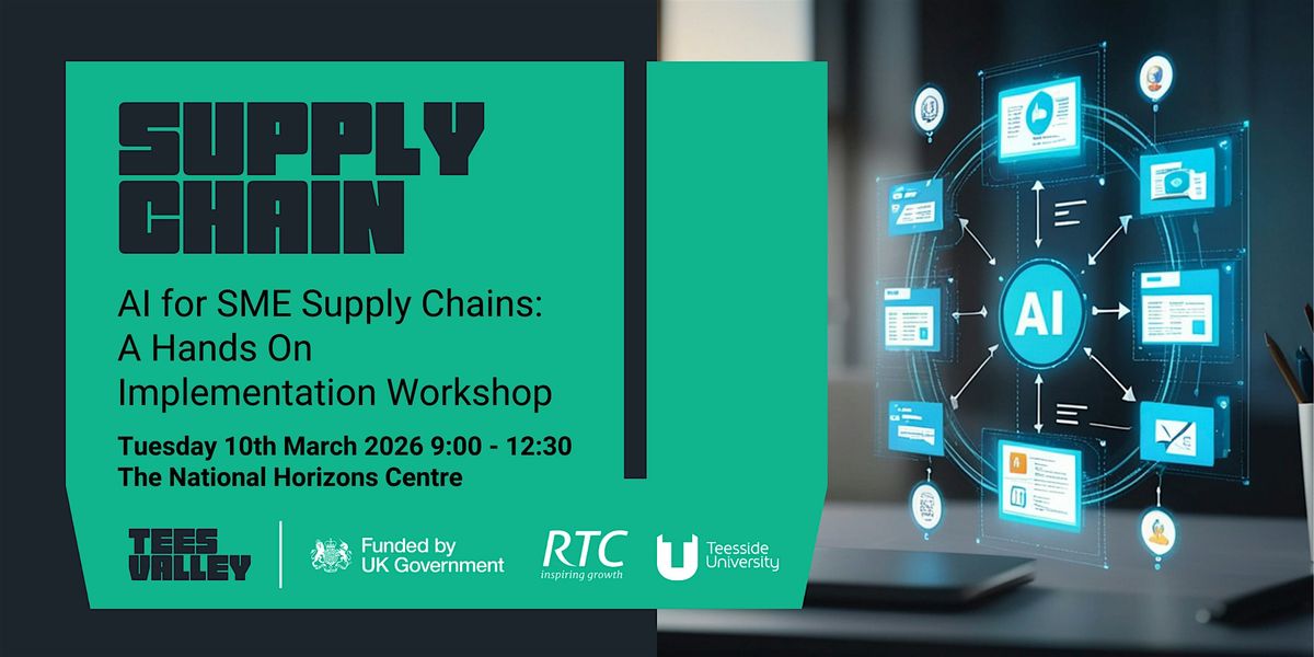 This practical, hands-on workshop is designed specifically for Tees Valley SMEs looking to improve efficiency, strengthen resilience, and unlock value across their supply chains using AI.