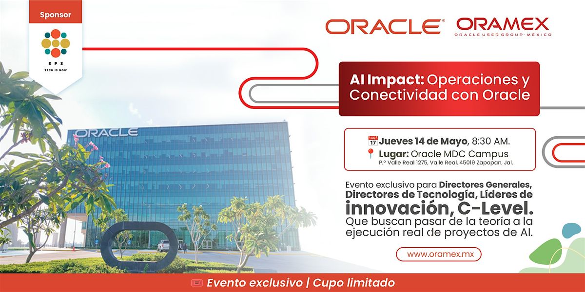 Este AI Impact: Operaciones y Conectividad con Oracle en el Oracle MDC de Guadalajara es una jornada bastante interesante, totalmente práctica, diseñada para que los directores puedan comprender los pasos del proceso de una transformación digital con casos de uso donde se implementan los Oracle AI Services, las arquitecturas Agénticas en acción y las metodologías para abordar proyectos de Inteligencia Artificial así como los procesos y buenas prácticas para la mejora de su operación con AIOps.