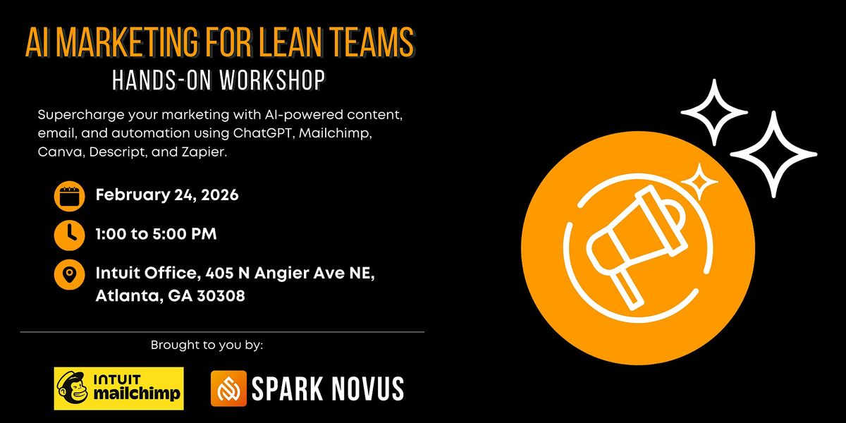 Spark Novus and Mailchimp are hosting a hands-on workshop to supercharge marketing systems with AI for small teams under real growth pressure.