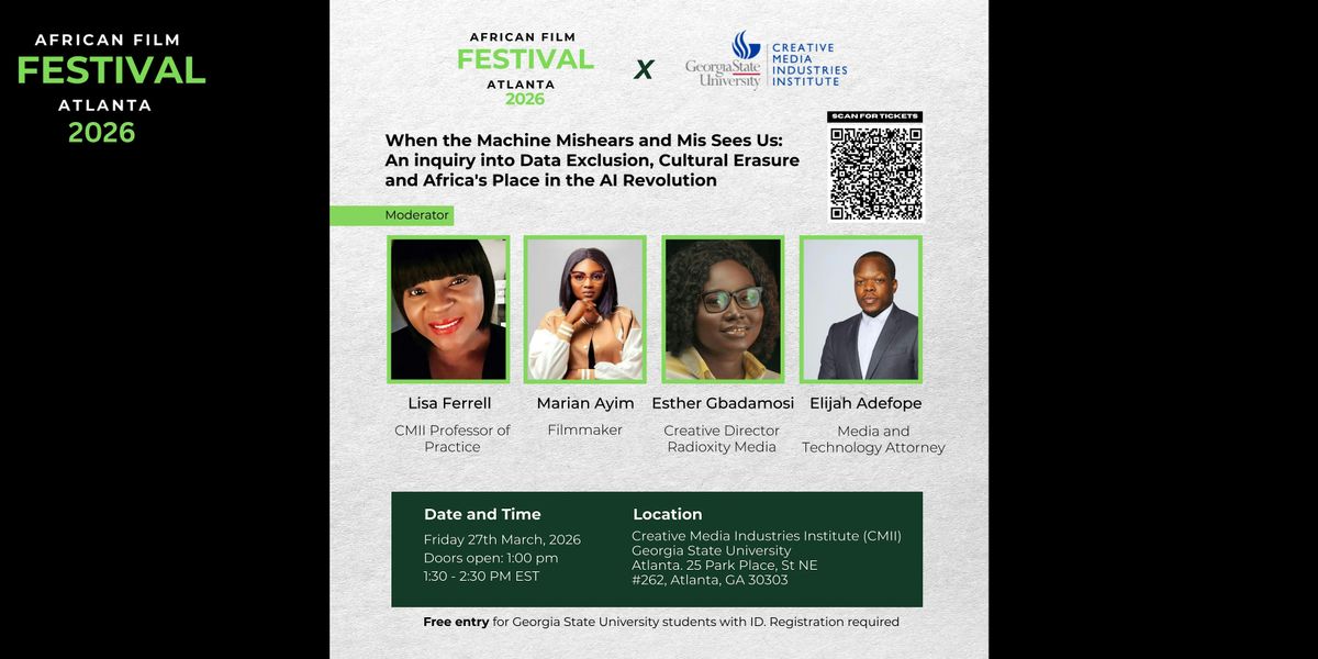 This panel examines the growing influence of artificial intelligence on how Africa and the African diaspora are represented in the digital age. As AI systems increasingly shape global narratives, the absence or underrepresentation of African voices, cultures, and data in training datasets raises critical concerns about cultural and economic exclusion. Panelists will explore how biased or incomplete data can lead to misrepresented identities, misunderstood accents, and distorted depictions of African landscapes and communities. Framed as a continuation of historical patterns of extraction, the conversation highlights the urgent need for inclusive data practices that ensure African perspectives help shape the technologies and the future they influence.