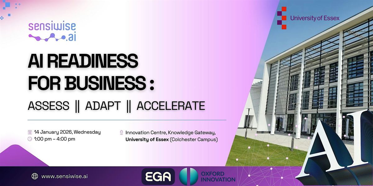 Welcome to the AI Readiness for Business: Assess, Adapt, Accelerate event! Join us at the Innovation Centre, Knowledge Gateway on January 14, 2026, at 12:30 PM (Europe/London). Get ready to dive into the world of AI and discover how it can benefit your business. Let's assess where you stand, adapt to the changing landscape, and accelerate your growth. Don't miss this opportunity to stay ahead of the curve!