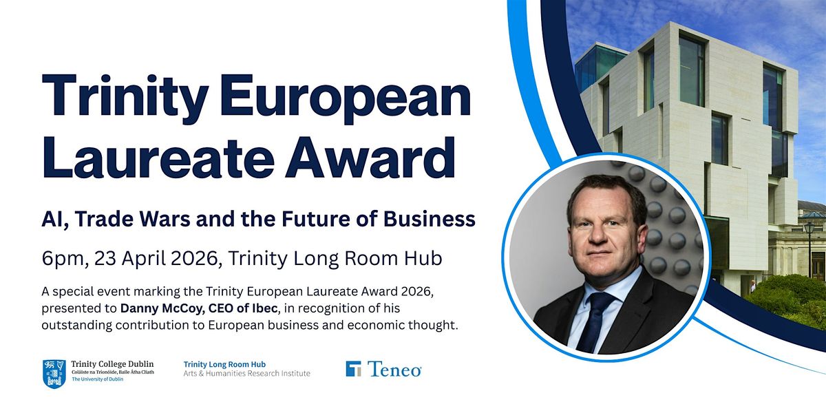 Join us at the Trinity Long Room Hub for a special public event marking the Trinity European Laureate Award 2026, presented to Danny McCoy, CEO of Ibec, in recognition of his outstanding contribution to European business and economic thought.
