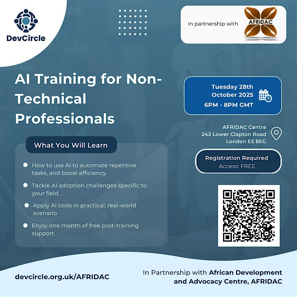 - Join our AI for Non-Tech Masterclass to connect with fellow attendees and continue the conversation: https://devcircle.org.uk/AImasterclass.