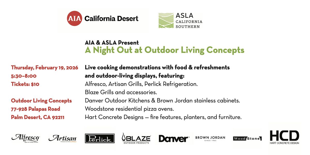 Join your local AIA California Desert and ASLA California Southern chapters for an outdoor social event and industry camaraderie!