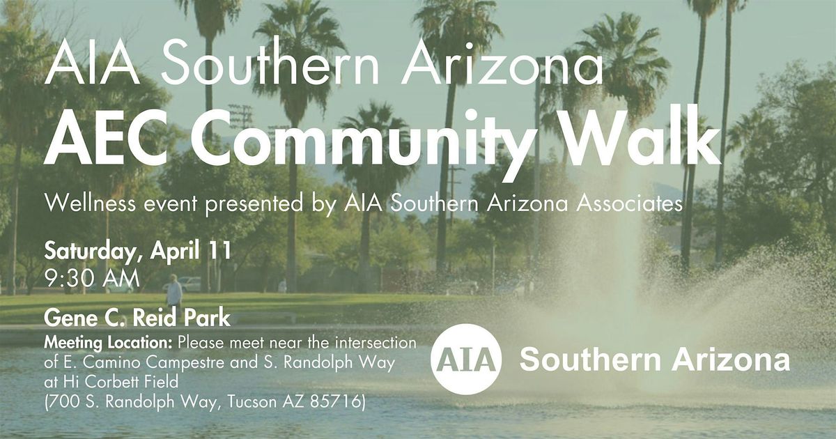 All are welcome to join AIA Southern Arizona on Saturday, April 11 at our Associates Wellness event with an AEC Community Walk at Gene C. Reid Park! It is sure to be a morning of fun, wellness and community.