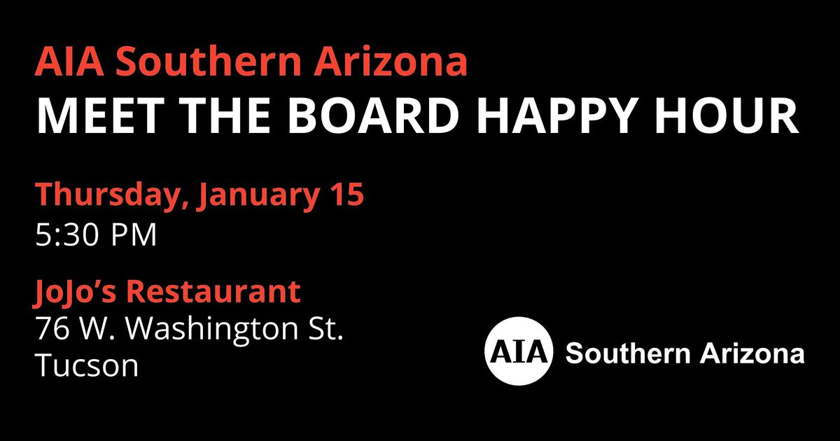 Join us on Thursday, January 15 at JoJo's Restaurant in Tucson for a fun happy hour event to meet your chapter leadership and network with fellow members as we look ahead to 2026! This is a great opportunity to share ideas, spark new conversations, and help shape what you’d love to see AIA Southern Arizona take on in the coming year.