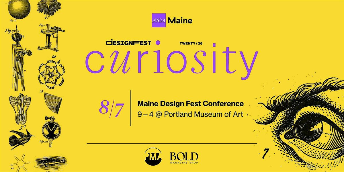 Join AIGA Maine for the 2026 Design Fest Conference, a full-day gathering of designers, creatives, and thinkers from across Maine and beyond. This year’s theme, Curiosity, invites us to explore the questions, experiments, and unexpected paths that shape creative work and community.