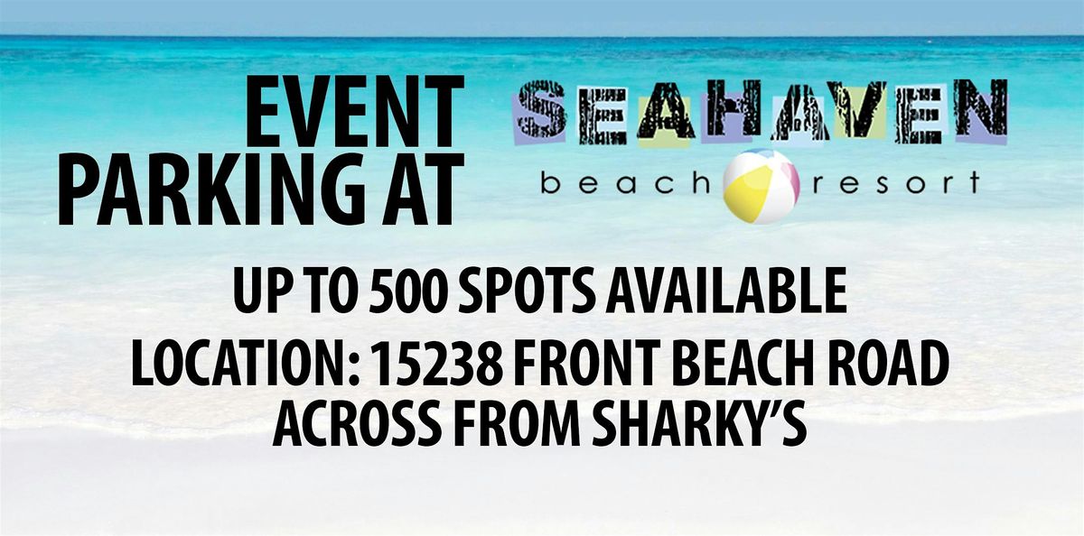 Seahaven Beach Resort offers event parking for up to 500 vehicles. We are NOT affiliated with any particular event. You must find transportation to and from the parking lot to your desired event.