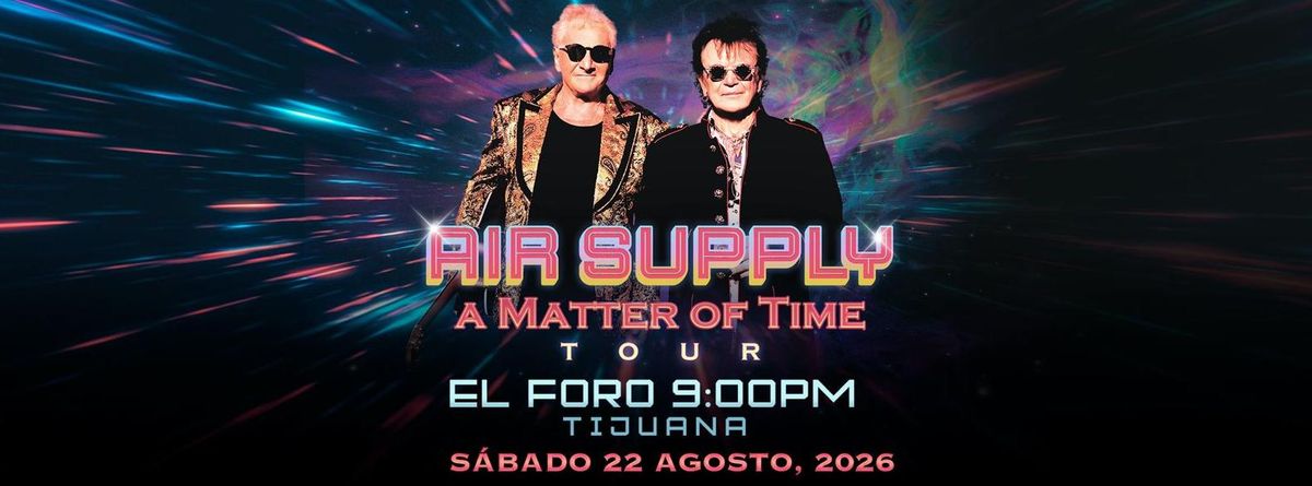**Attend AIR SUPPLY - A MATTER OF TIME TOUR at El Foro De Tijuana, Tijuana, MX, Mexico** Join us for AIR SUPPLY - A MATTER OF TIME TOUR. It's going to be a fun and relaxed event with great music and good company. A perfect way to spend your evening. **Event Details:** * **Location:** El Foro De Tijuana, Tijuana, MX, Mexico Register now to secure your spot at this landmark event. #AIRSUPPLY-AMATTEROFTIMETOUR #event #exciting #TijuanaEvents #MXEvents
