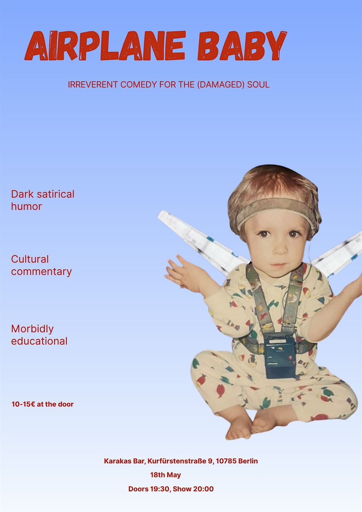 The American-turned-Berliner, with a lot to say about both places, is bringing an hour of comedy packed with things a baby definitely shouldn't be saying to Agata Bar on 21st April.
