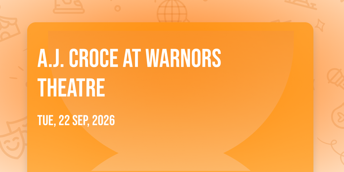 ✨ Enter a world of endless possibilities at A.J. Croce at Warnors Theatre, where every moment tells a story! 🏛️ The stunning Warnors Theatre in vibrant Fresno, CA transforms into a realm of wonder on September 22nd, 2026 at 07:30 PM. 🌟 They have crafted an experience that goes beyond the ordinary, combining elements of surprise, delight, and pure entertainment. Every detail has been thoughtfully considered to ensure your journey with us is nothing short of extraordinary. 🎯 Join fellow adventure seekers and memory makers in this celebration of imagination and innovation. 🎊 Reserve your spot today and be part of something truly special!