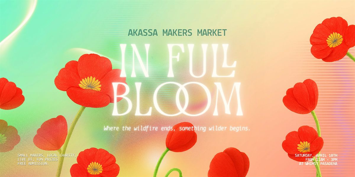 Join us for AKASSA Makers Market: In Full Bloom — a vibrant, one-day celebration of small businesses, handmade goods, and community at Whimsy Pasadena. Browse a curated collection of makers and independent vendors, discover something you'll love, and spend a Saturday morning surrounded by flowers, creativity, and good people.
