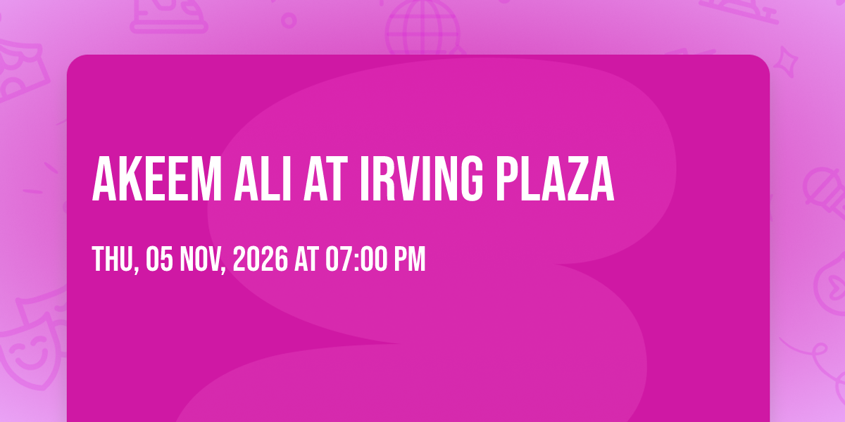 🌟 Step into a world of wonder at Akeem Ali at Irving Plaza, where extraordinary moments await! 🏛️ Located at Irving Plaza in dynamic New York, NY, this event will become the talk of the town. 📅 Join us on November 5th, 2026 at 07:00 PM for a celebration that defies the ordinary. ✨ This curated experience brings together the best of entertainment, culture, and community spirit. Every detail has been thoughtfully planned to ensure an unforgettable experience for all our guests. 🎯 Take advantage of this opportunity to be part of something special. 🎊 Early registration is recommended as space is limited!