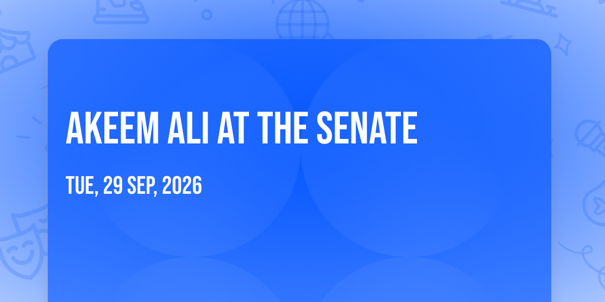 ✨ Enter a world of endless possibilities at Akeem Ali at The Senate, where every moment tells a story! 🏛️ The stunning The Senate in vibrant Columbia, SC transforms into a realm of wonder on September 29th, 2026 at 08:00 PM. 🌟 They have crafted an experience that goes beyond the ordinary, combining elements of surprise, delight, and pure entertainment. Every detail has been thoughtfully considered to ensure your journey with us is nothing short of extraordinary. 🎯 Join fellow adventure seekers and memory makers in this celebration of imagination and innovation. 🎊 Reserve your spot today and be part of something truly special!