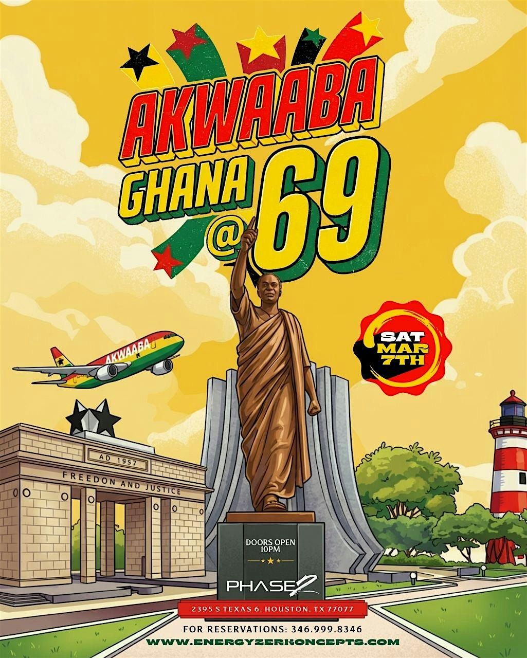 Join us at Phase 2 Houston as we celebrate 69 years of Ghanaian pride.