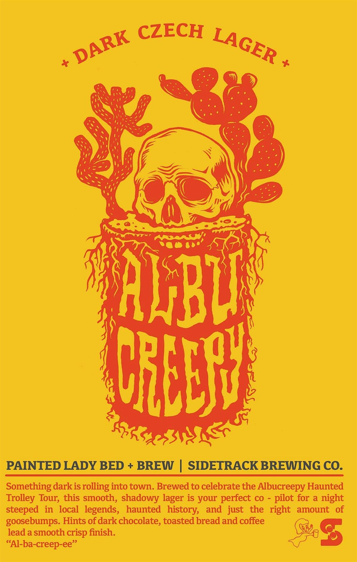 Something dark is rolling into town. Join us at Painted Lady Bed & Brew for the official release party of Albucreepy Dark Czech Lager, a collaboration with our friends at Sidetrack Brewing Co., brewed to celebrate the return of the Albucreepy Haunted Trolley Tour. This smooth, shadowy lager is your perfect co-pilot for a night steeped in local legends, haunted history, and just the right amount of goosebumps.