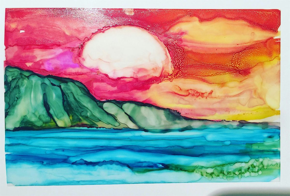Discover the vibrant beauty of alcohol ink painting in this fun and relaxing workshop, where you'll create colorful Hawaiian landscapes. Guided step-by-step by artist Jenny, you'll learn how to work with this expressive medium—no experience needed! Enjoy the laid-back atmosphere of the Surfjack Hotel as you unleash your creativity. You'll leave with a beautifully matted piece of art to take home. All supplies are included.