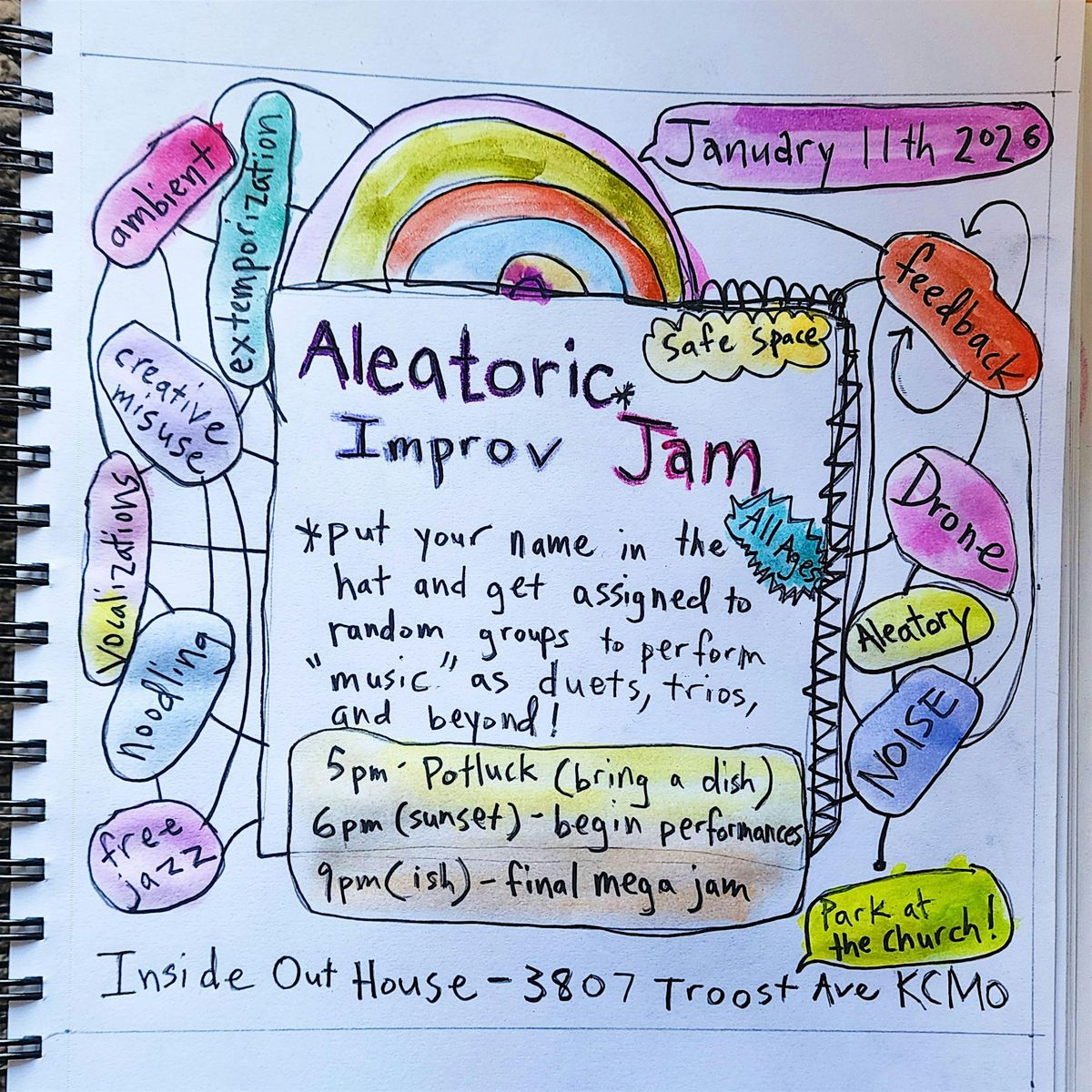 Aleatory, free jazz, noise, drone, ambient, noodling, vocalizations, feedback, creative misuse, extemporization, and beyond are welcomed.