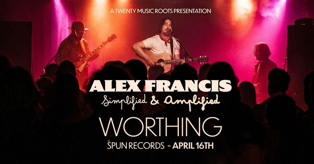 Join rising star Alex Francis for an intimate presentation of brand-new material and fan favourites at Spun Records in Worthing on April 16th.